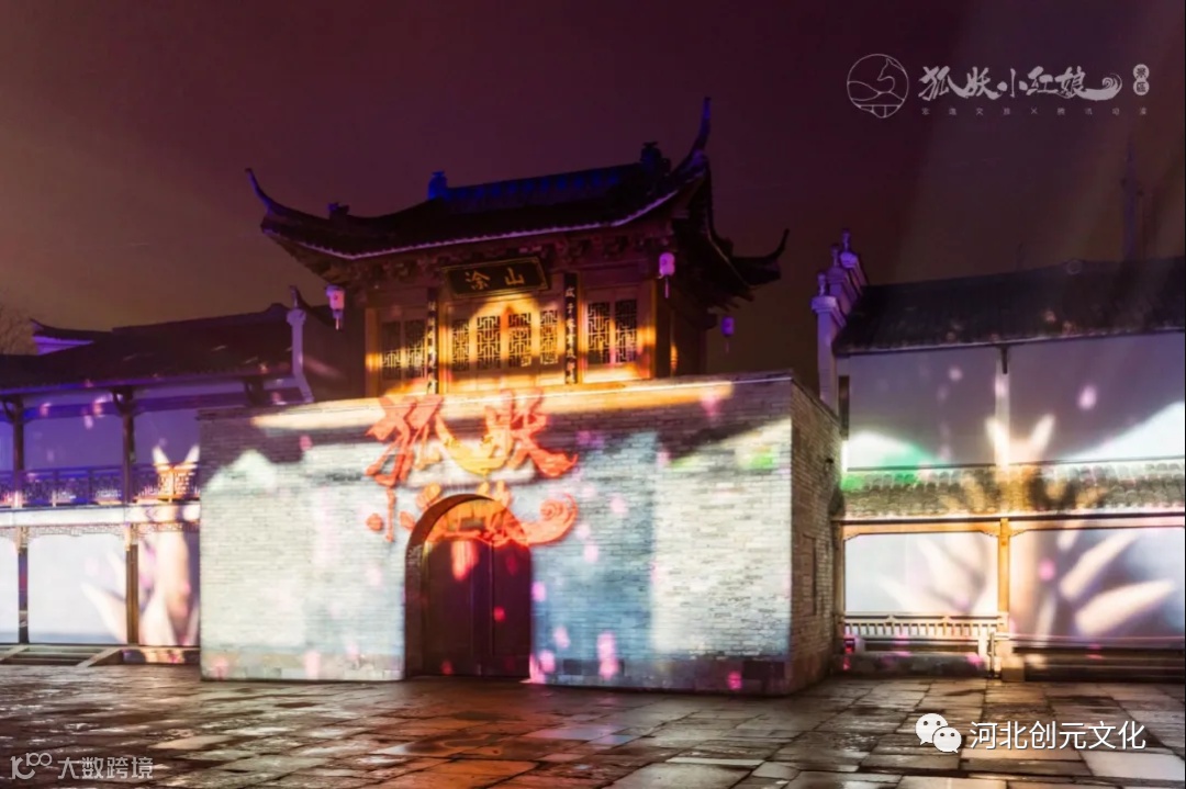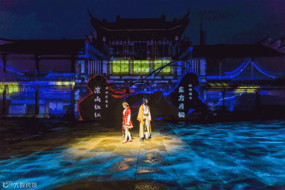 在演出中,数字技术的充分运用,进一步模糊了从虚拟世界到真实体验的边界:绵延35米的墙面全部采用先进的技术手段和设备,再现了涂山城全貌。景区不仅通过演出让人感受到漫画中的爱恨情仇,同时还设置涂山结缘登记处、涂山花阁、涂山照相馆等爱情主题打卡点。