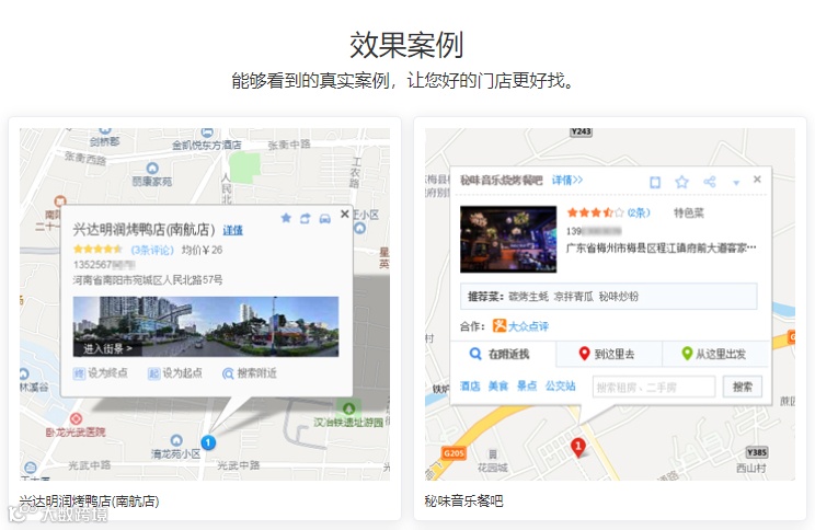 有了地图定位,不但方便给客户分享位置,还可以通过地图信息展示吸引新用户到店消费。联系我们,立即标注~