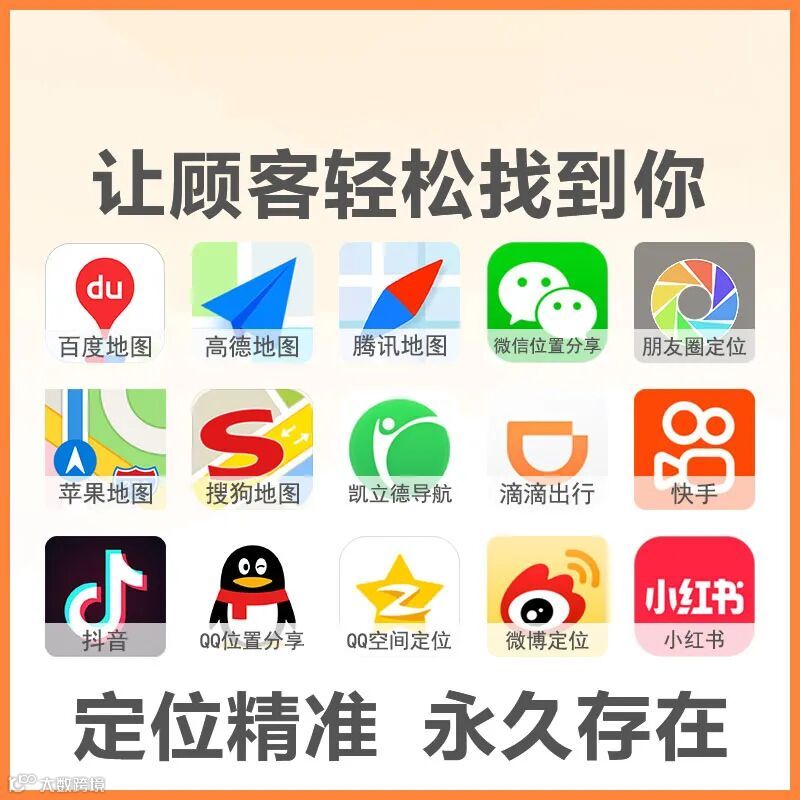 全网地图平台:百度地图、高德地图、腾讯地图、微信地图、苹果地图、搜狗地图、360地图、Google地图、手机APP地图、微博地图、抖音地图、快手地图、火山地图、西瓜视频、小红书、美团外卖位置信息;