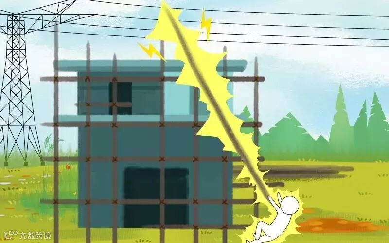 屋顶架设天线、晾衣杆等金属物品,致使高压线放电,触电!