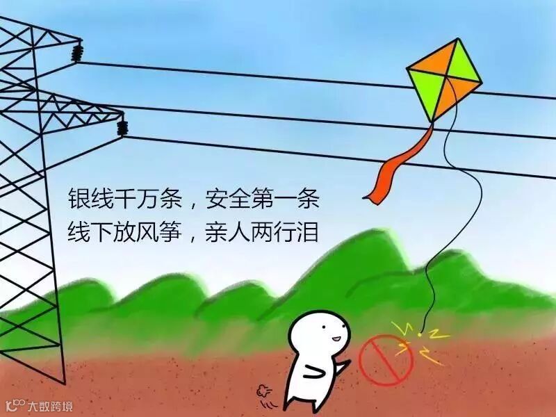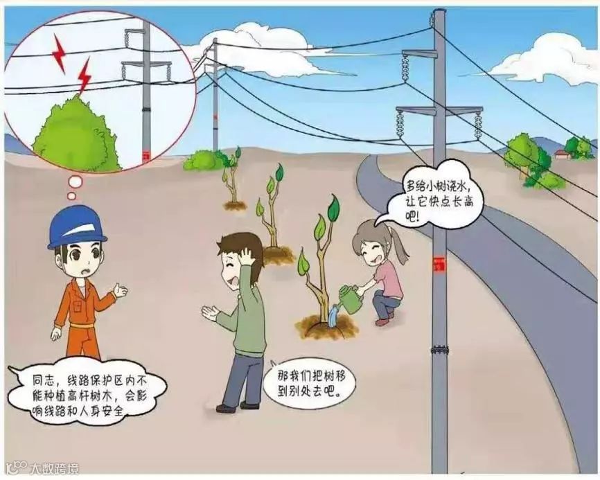为了您的人身安全和电网稳定供电,请不要在高压线路保护区内种植高大树木、建设房屋、钓鱼、大型机械施工,请不要在距离高压线路300米范围内放风筝。