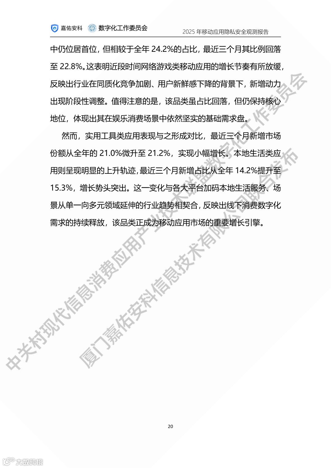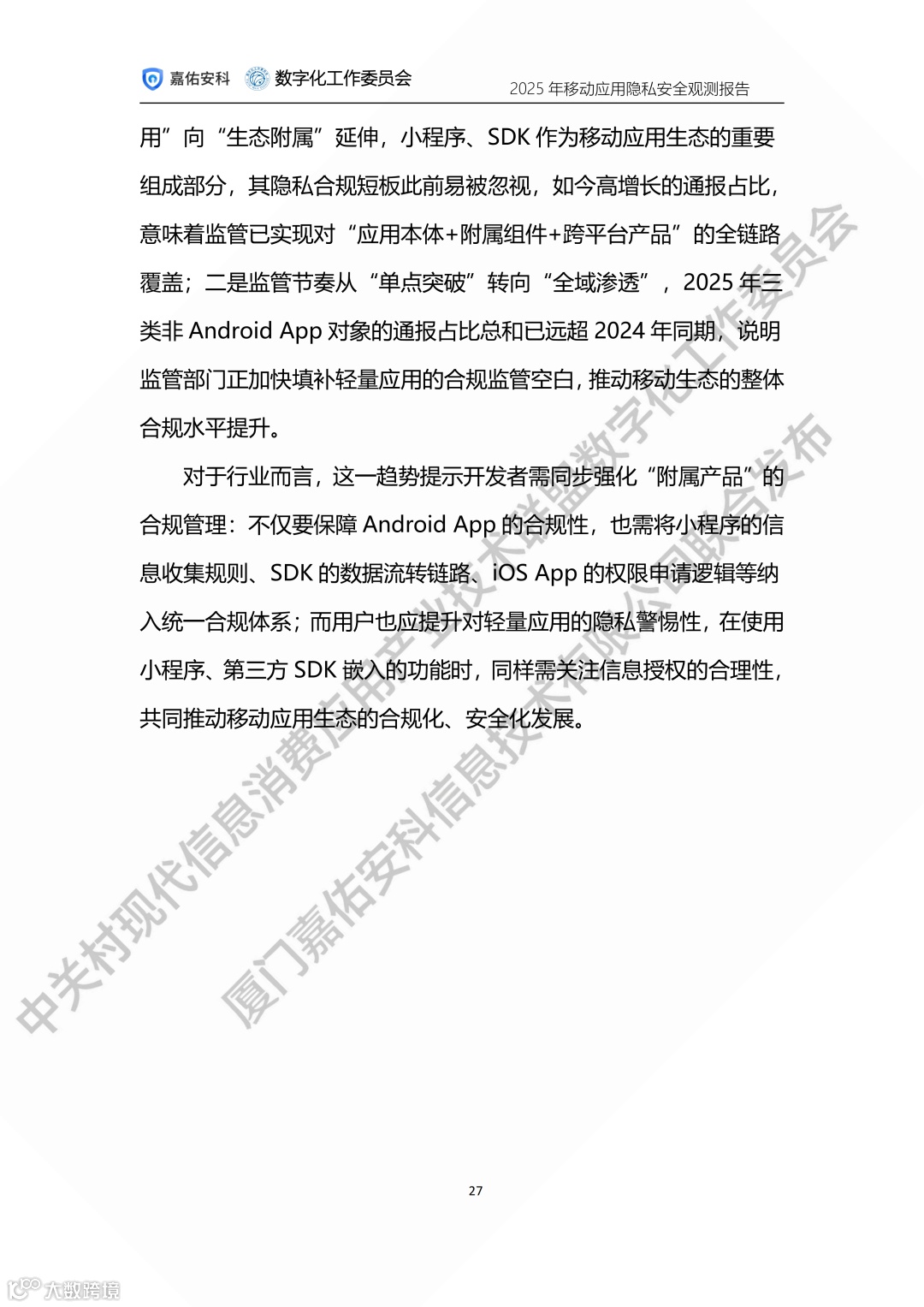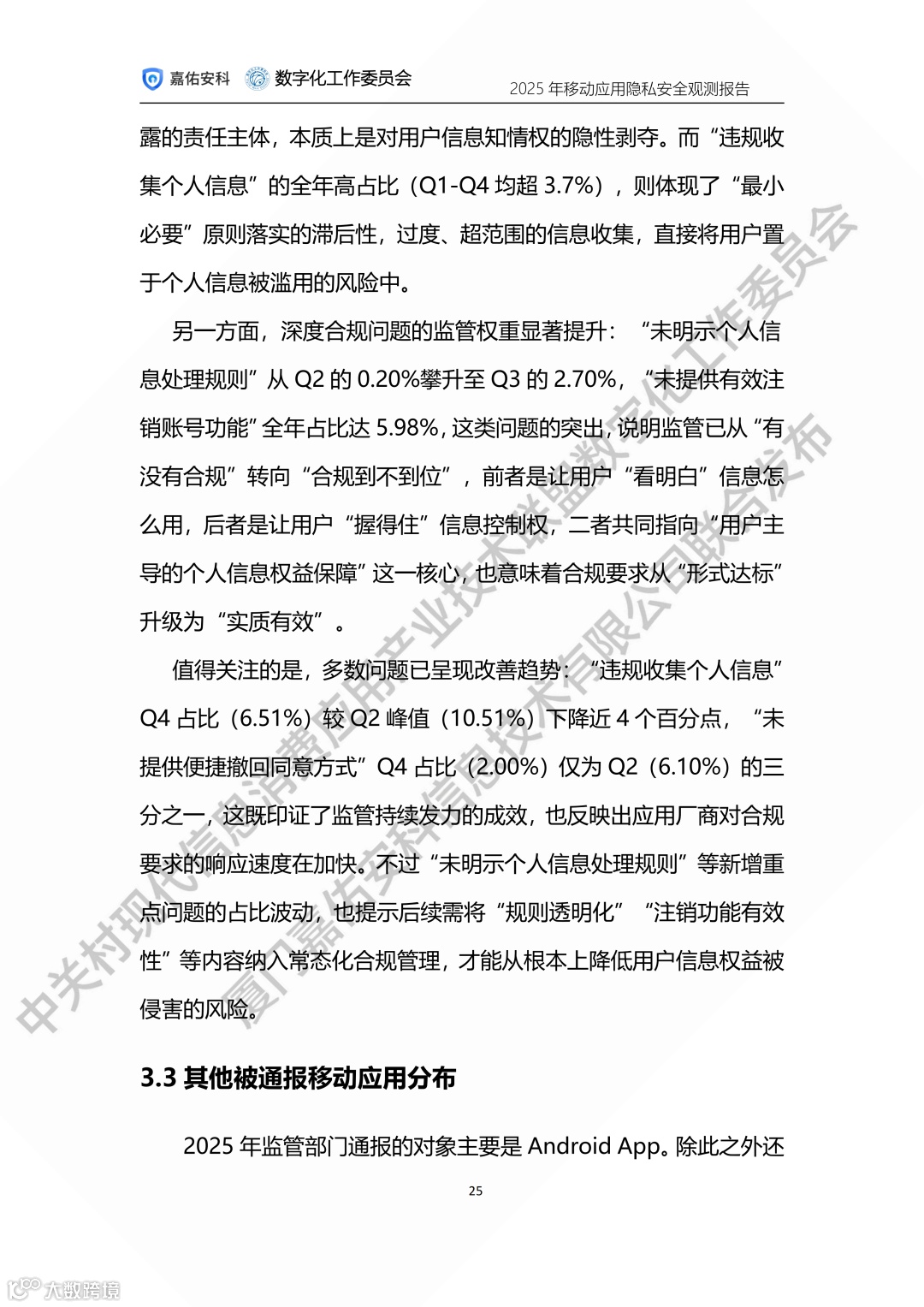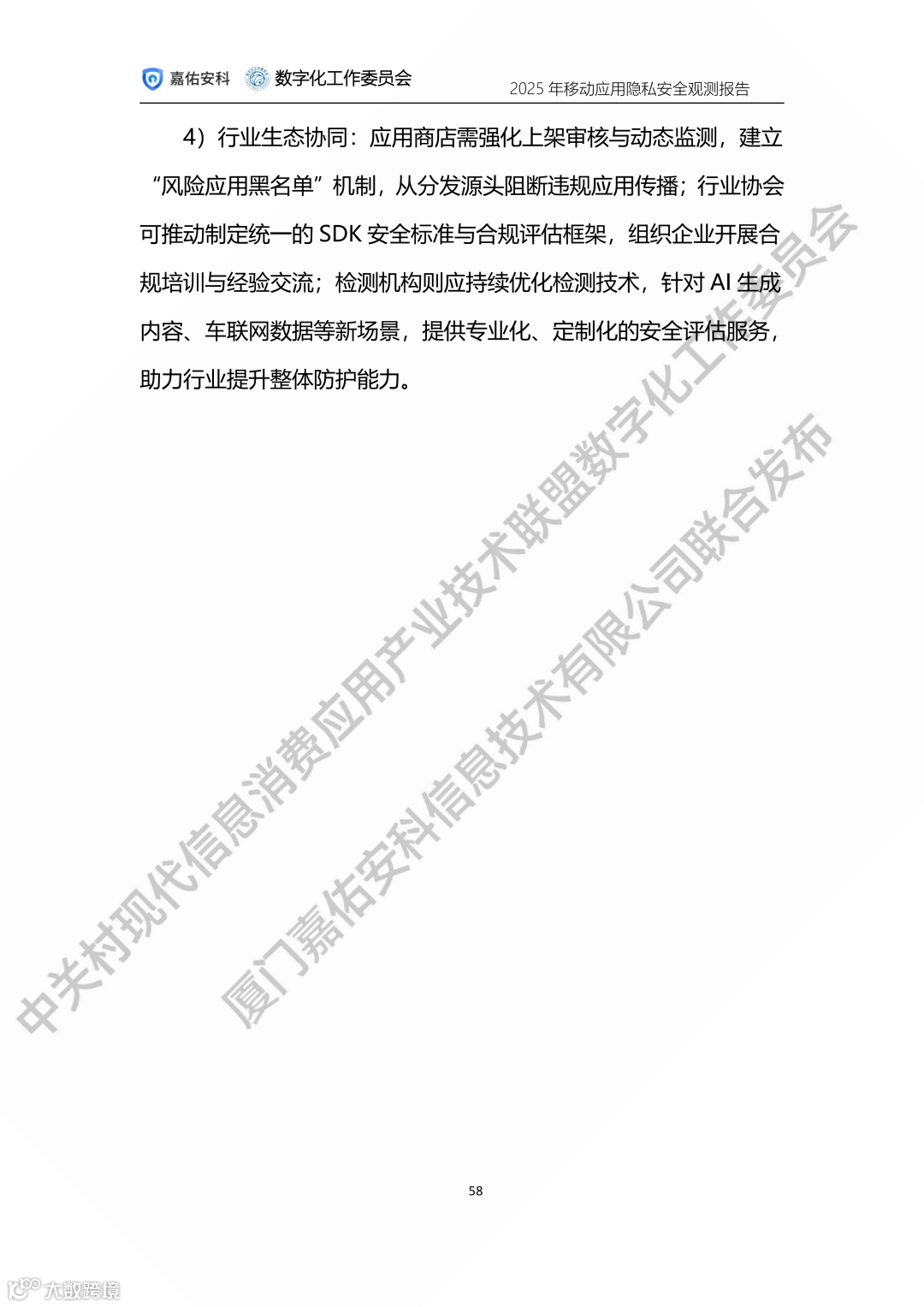 中关村现代信息消费应用产业技术联盟数字化工作委员会携手厦门嘉佑安科信息技术有限公司联合发布2025年度移动应用隐私安全观测报告。