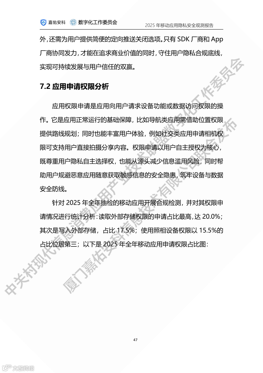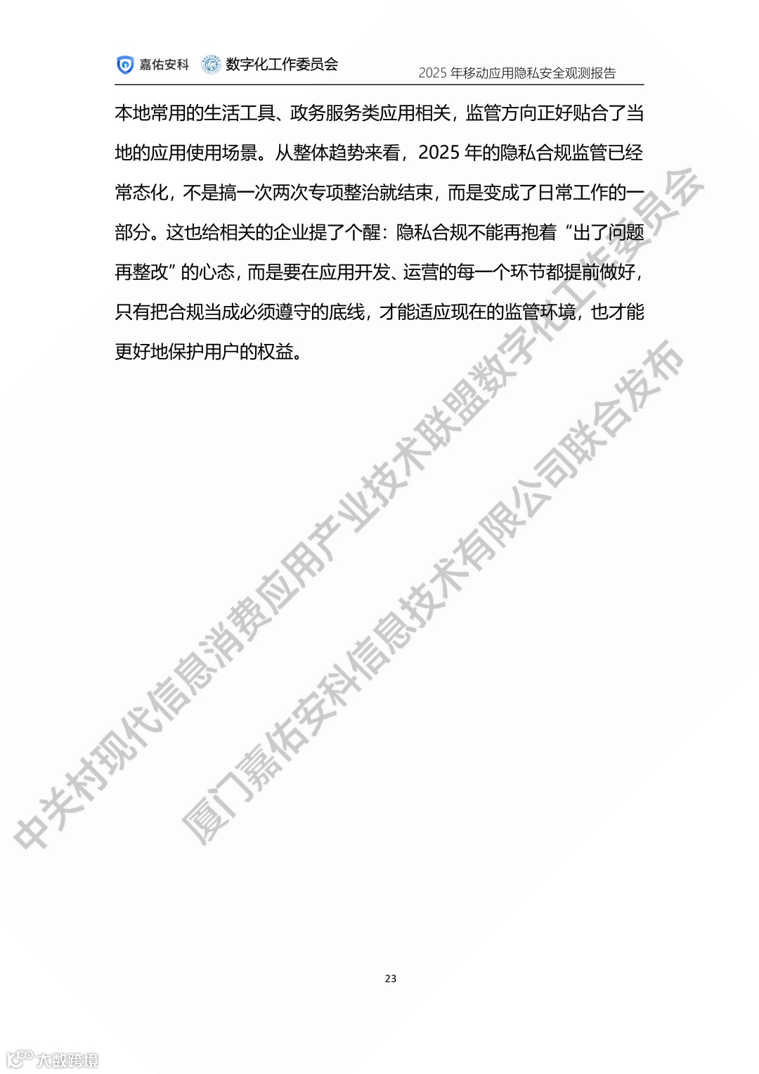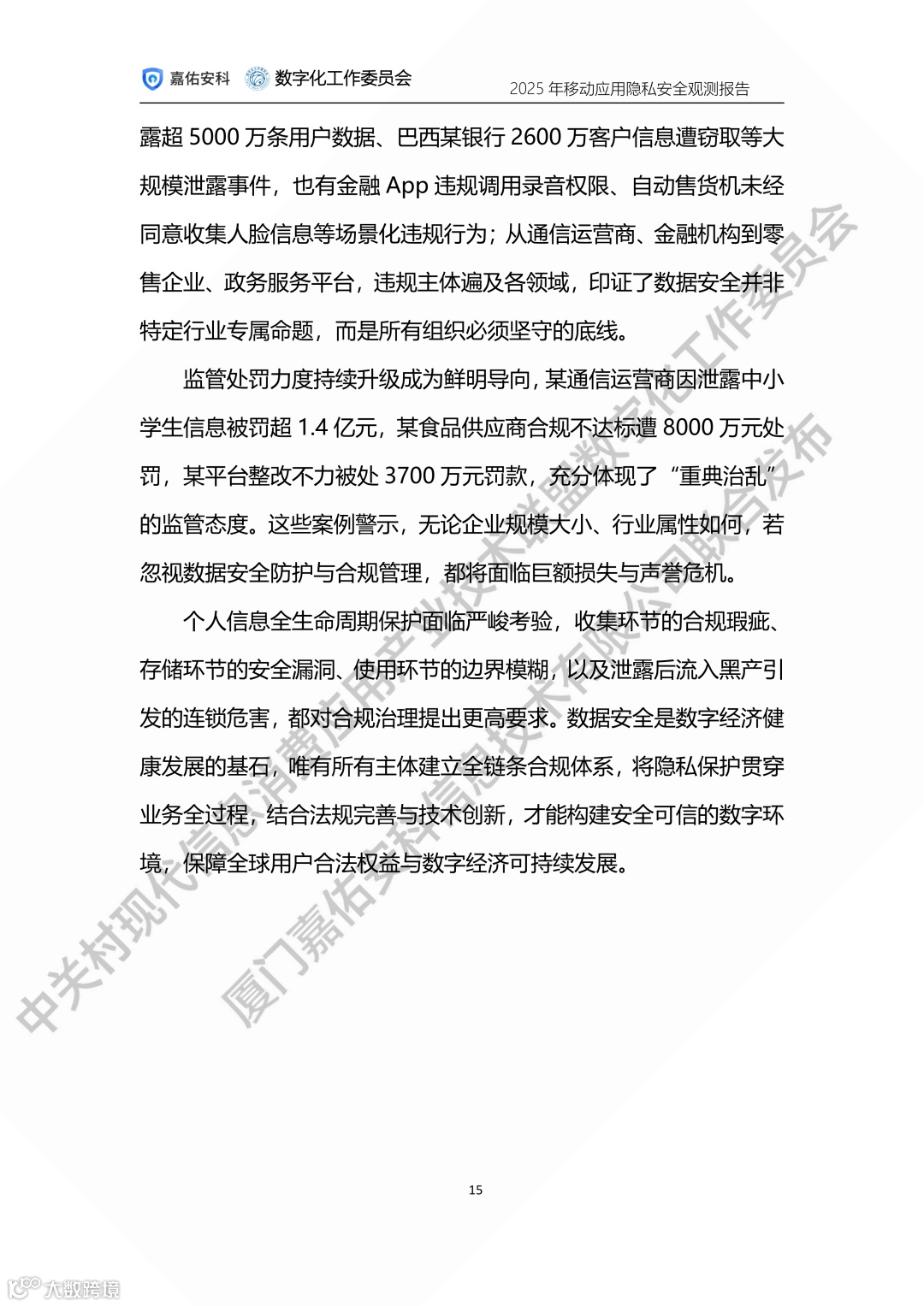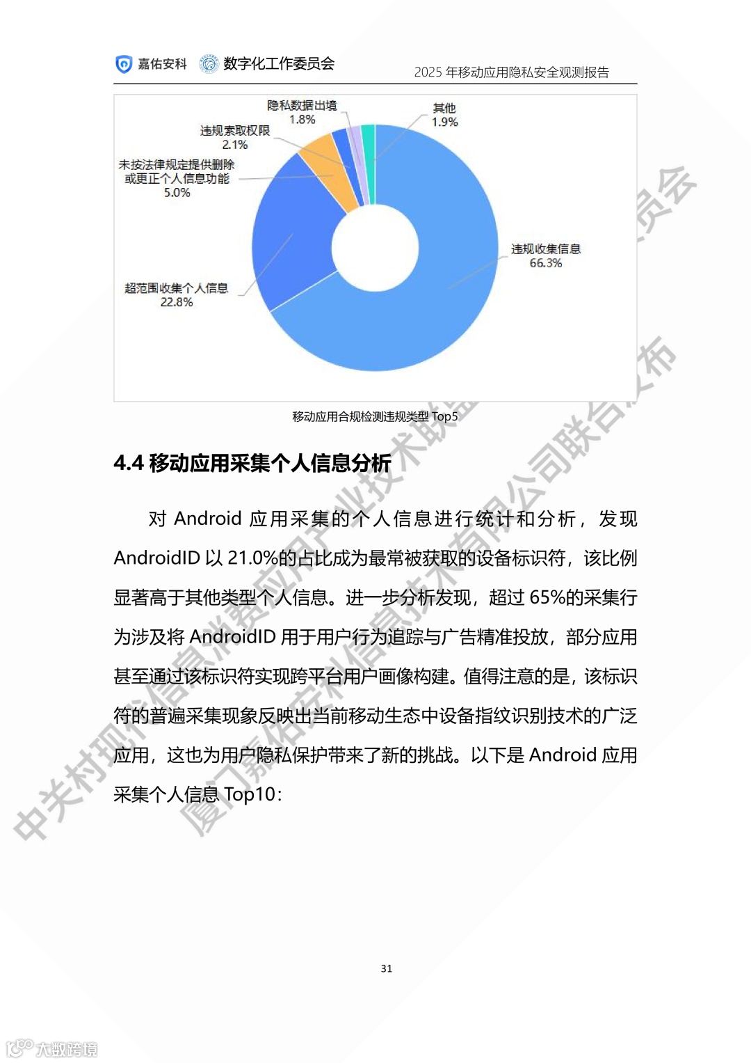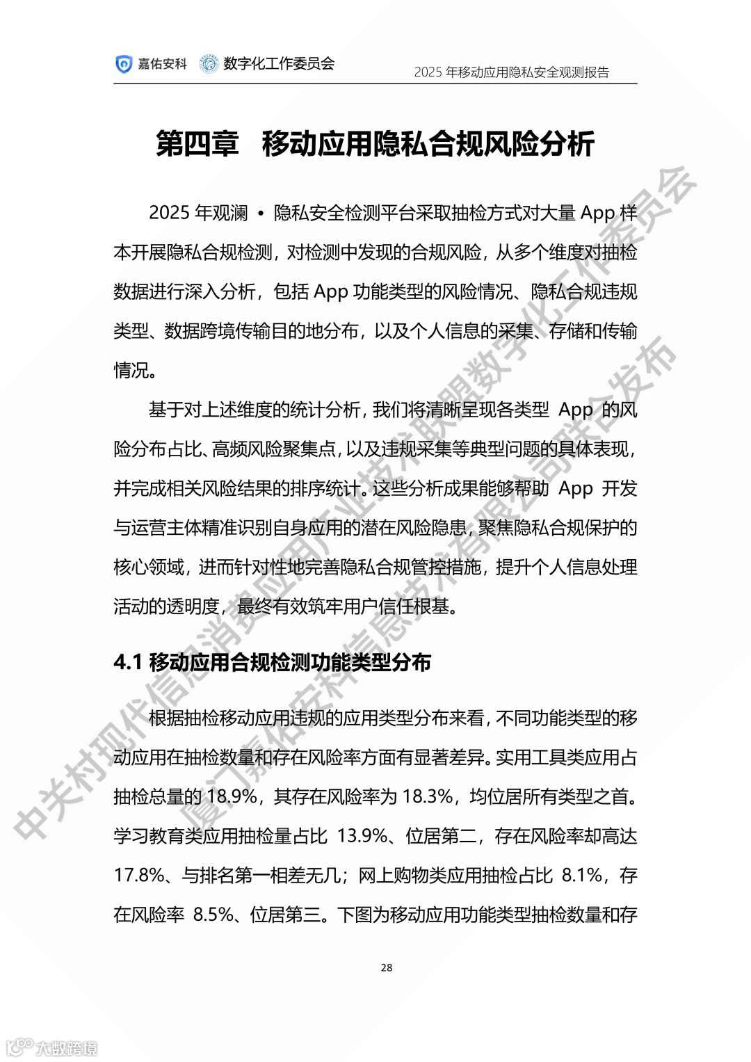 中关村现代信息消费应用产业技术联盟数字化工作委员会携手厦门嘉佑安科信息技术有限公司联合发布2025年度移动应用隐私安全观测报告。
