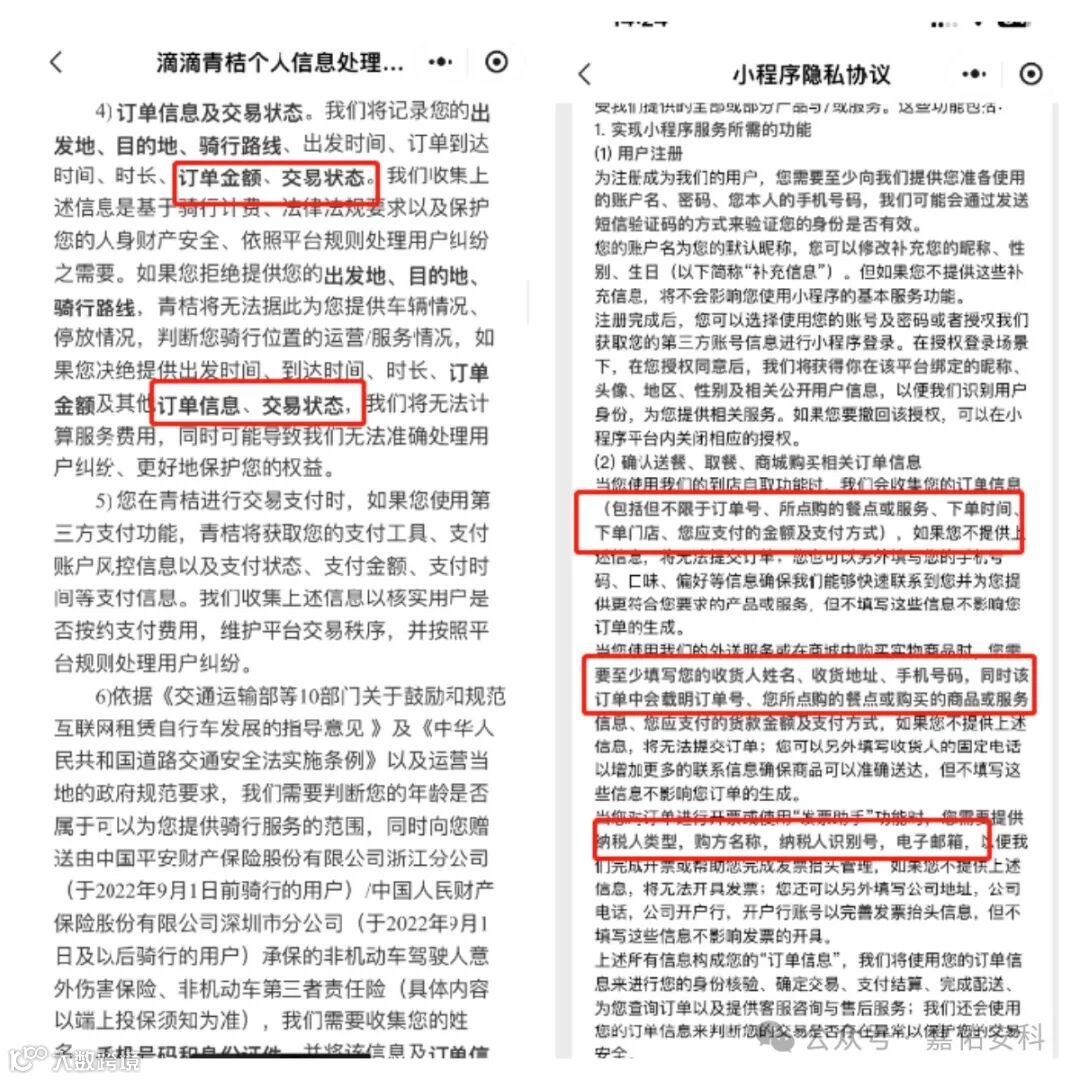 个人信息处理规则应简洁清晰的描述各业务收集个人信息的目的、方式及范围。部分小程序是App的阉割版,但开发者/运营者可能会直接适用App版本的隐私政策,导致收集信息的目的、方式及范围与小程序自身不一致。所以开发者/运营者在书写个人信息处理规则时,应从小程序实际出发。示例如下: