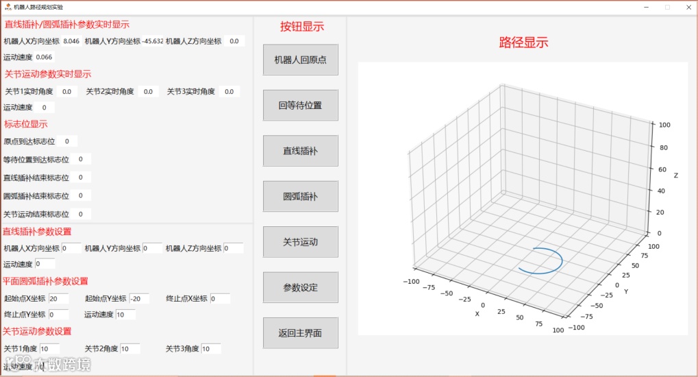 笛卡尔坐标空间的轨迹规划实验(平面直线、平面圆弧、空间直线)