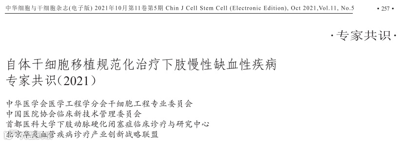 3、自体干细胞移植规范化治疗下肢慢性缺血性疾病专家共识(2021)