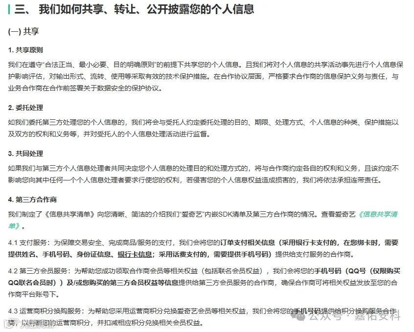 这个部分一般和第三方服务披露有所关联,因为第三方服务属于个人信息的共享部分。