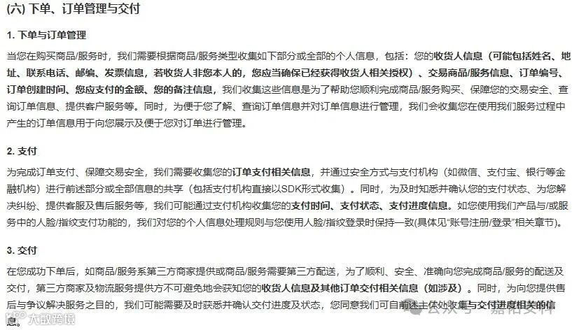 这部分是隐私政策中最重要的部分,一般是逐一列举App的业务功能并详细说明这些活动中收集个人信息类型、目的、方式,且个人信息类型不能模糊,涉及处理敏感个人信息的需要显著标识,存在个性化推荐功能的需要在隐私政策中说明。