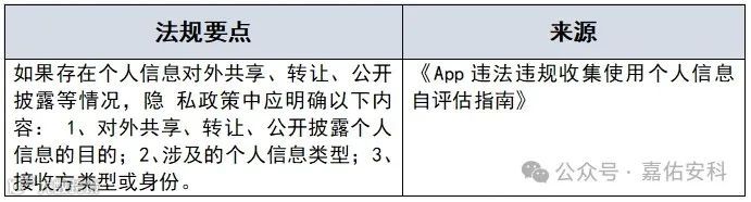 若存在对外共享、转让、公开披露个人信息等情况,隐私政策中应明确说明: