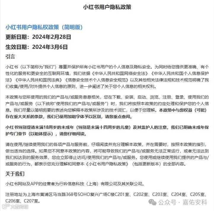 这部分内容的撰写相对容易,主要是介绍App运营者的基本情况,包括主体名称、联系方式、注册地址等;并说明隐私政策的发布日期、生效日期、适用范围、更新方式。