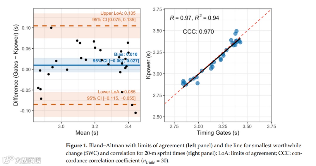 使用RStudio(v4.3.1)将K-power传感器的效度和一致性与黄金标准测量(计时门)进行比较,显著性水平设为0.05。
