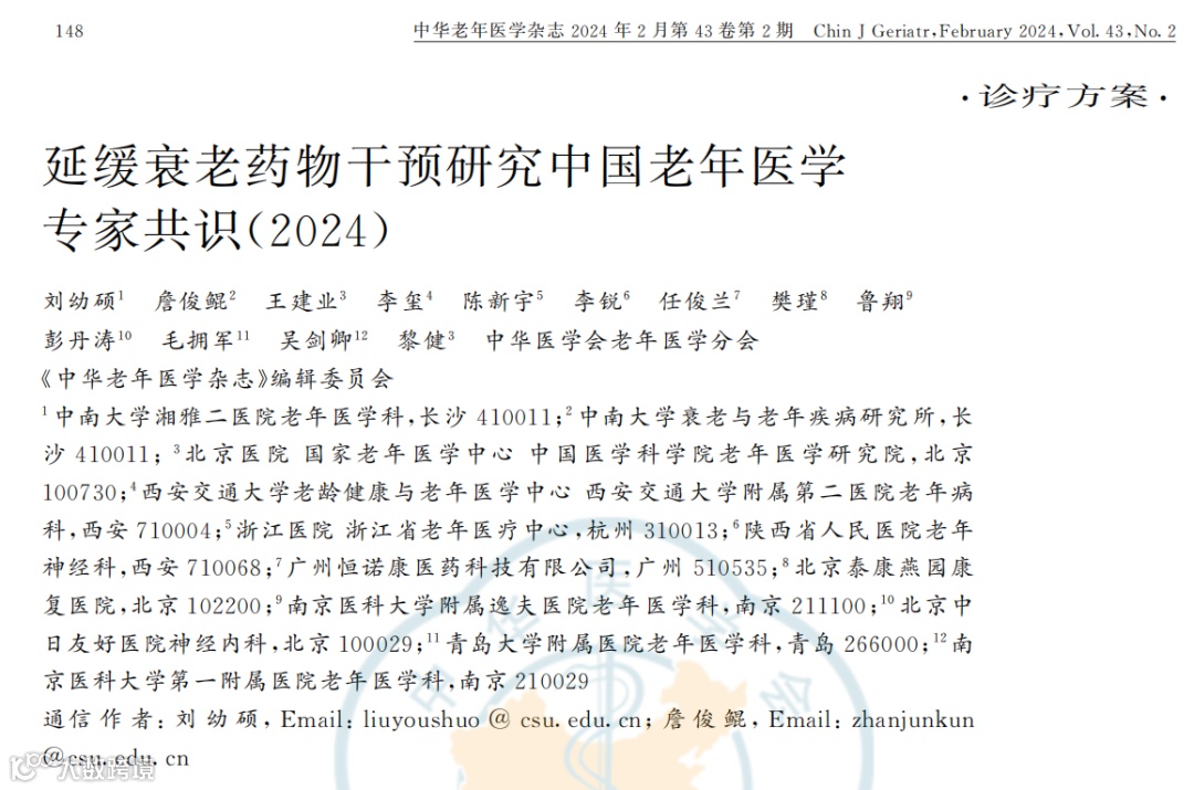 [10]刘幼硕,詹俊鲲,王建业等.延缓衰老药物干预研究中国老年医学