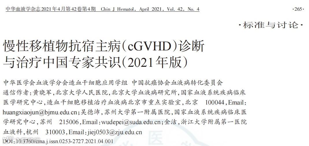 [8]中华医学会血液分会造血干细胞应用学组,中国抗癌协会血液病转化委员会.慢性移植物抗宿主病(cGVHD)诊断与治疗中国专家共识(2021年版)[J].中华血液学杂志, 2021,42(4):265-275.