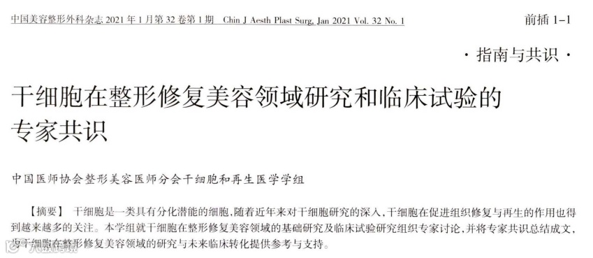 [6]刘宏伟,郭澍,程飚等.干细胞在整形修复美容领域研究和临床试验的专家共识[J].中国美容整形外科杂志,2021,32(01):1-7.