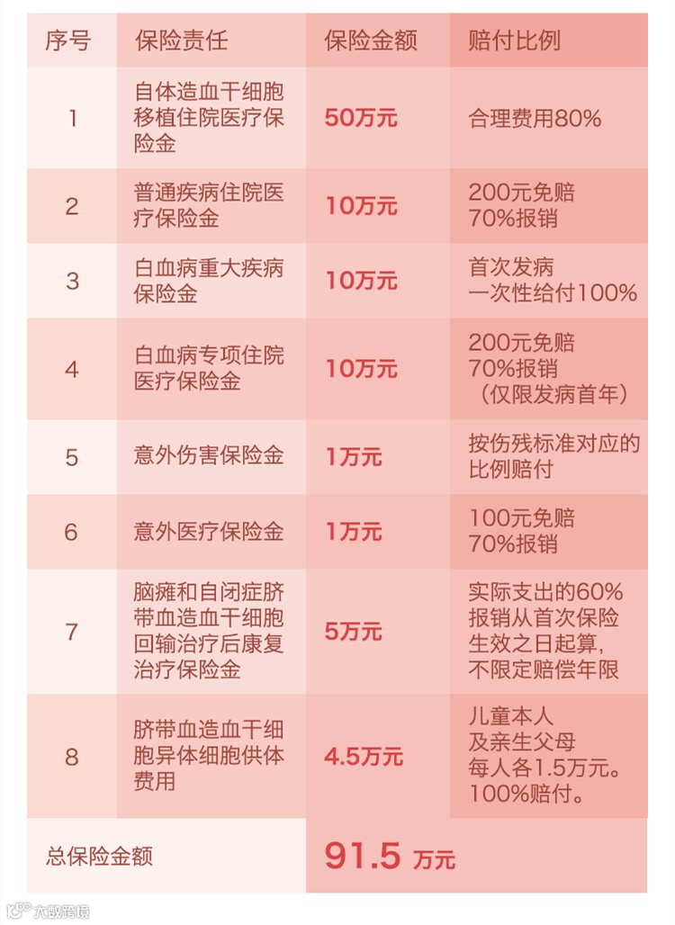 新生儿干细胞保险内容: