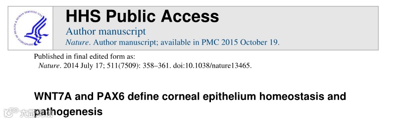 2014年7月,中山大学眼科学团队与美国研究人员在nature杂志发表的一篇文章 WNT7A and PAX6 definecorneal epithelium homeostasis and pathogenesis。该研究成果证实了调控角膜缘干细胞分化的关键因子WNT7A和PAX6在角膜谱系专向分化中起着重要的作用,首次将皮肤干细胞诱导分化为角膜缘干细胞,并成功修复角膜功能,为治疗角膜疾病提供新策略。为修复和再生角膜表面,治疗角膜缘干细胞缺陷患者提供了一个潜在的资源。
