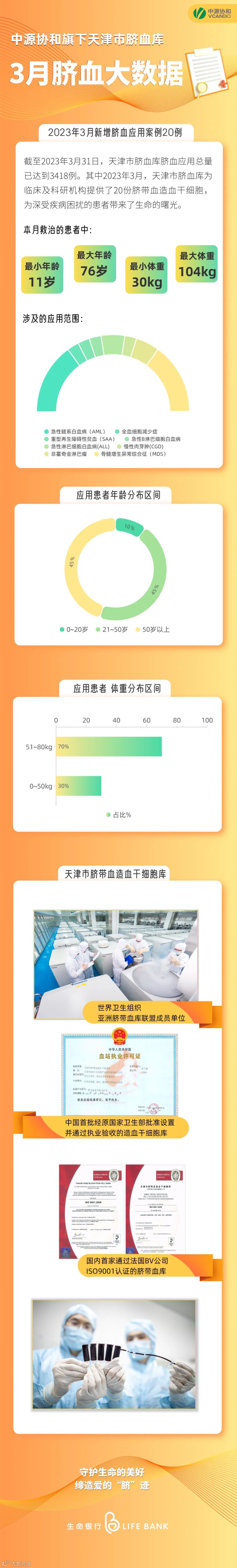 导读:2023年3月,天津市脐血库为临床及科研机构提供了20份脐带血造血干细胞,为深受疾病困扰的患者带来了生命的曙