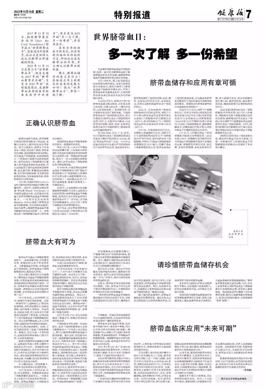 那么,脐带血储存有何意义?在临床应用上的现况和未来发展又如何?此前值第6个“世界脐带血日”之际,健康报特别报道,带您一起了解。