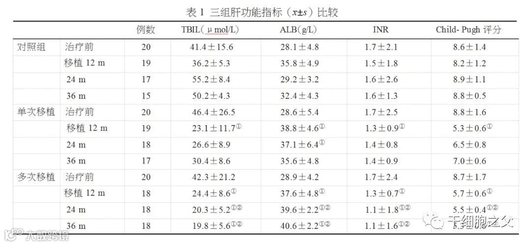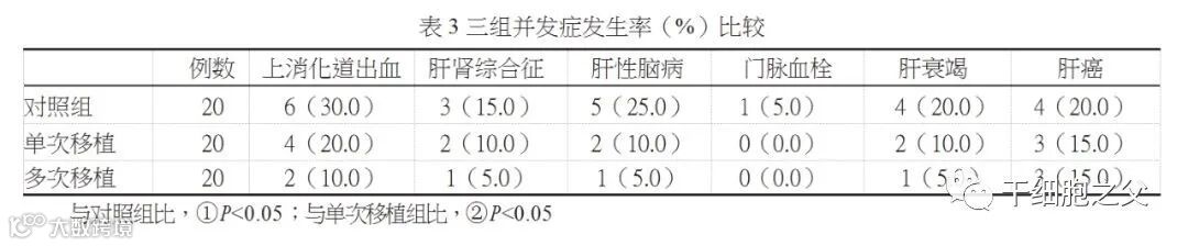 并且所有患者均未报告短期临床不良反应,包括右上腹疼痛,皮疹,感染,昏迷或休克。同时,通过在整个试验中监测并发症的发生率,发现间充质干细胞治疗组与对照组在并发症的发生方面无统计学差异,包括肝细胞癌,上消化道出血,肝性脑病和原发性腹膜炎。这些数据证实了间充质干细胞治疗的安全性。