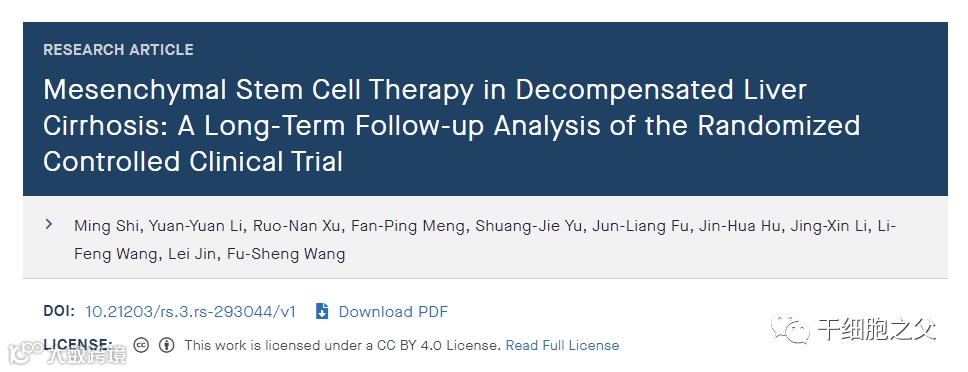 推荐阅读:6年随访研究数据显示,干细胞能改善肝硬化长期生存率