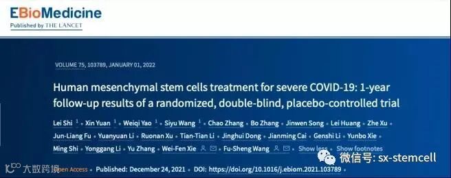 解放军总医院第五医学中心感染病诊疗与研究中心主任、国家感染性疾病临床医学研究中心主任王福生院士团队公布了使用人脐带间充质干细胞(UC-MSCs)治疗COVID-19重症患者随访1年的结果,文章发表于《柳叶刀》子刊——EBioMedicine。此前国内外尚无关于UC-MSCs治疗COVID-19患者长期随访数据的报道,结果显示:UC-MSCs给药对COVID-19患者肺部病变和症状的恢复具有长期益处。该项研究中所使用的间充质干细胞制剂由中源协和细胞基因工程股份有限公司制备提供。