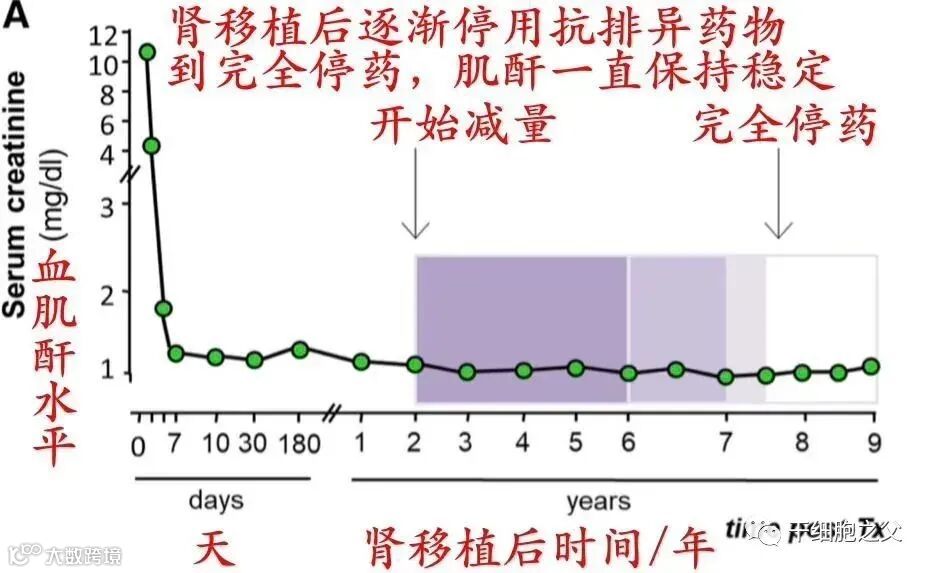 在移植后第2年,患者开始逐渐减少免疫抑制剂,一共用了5年多的时间完全停了所有的药物。