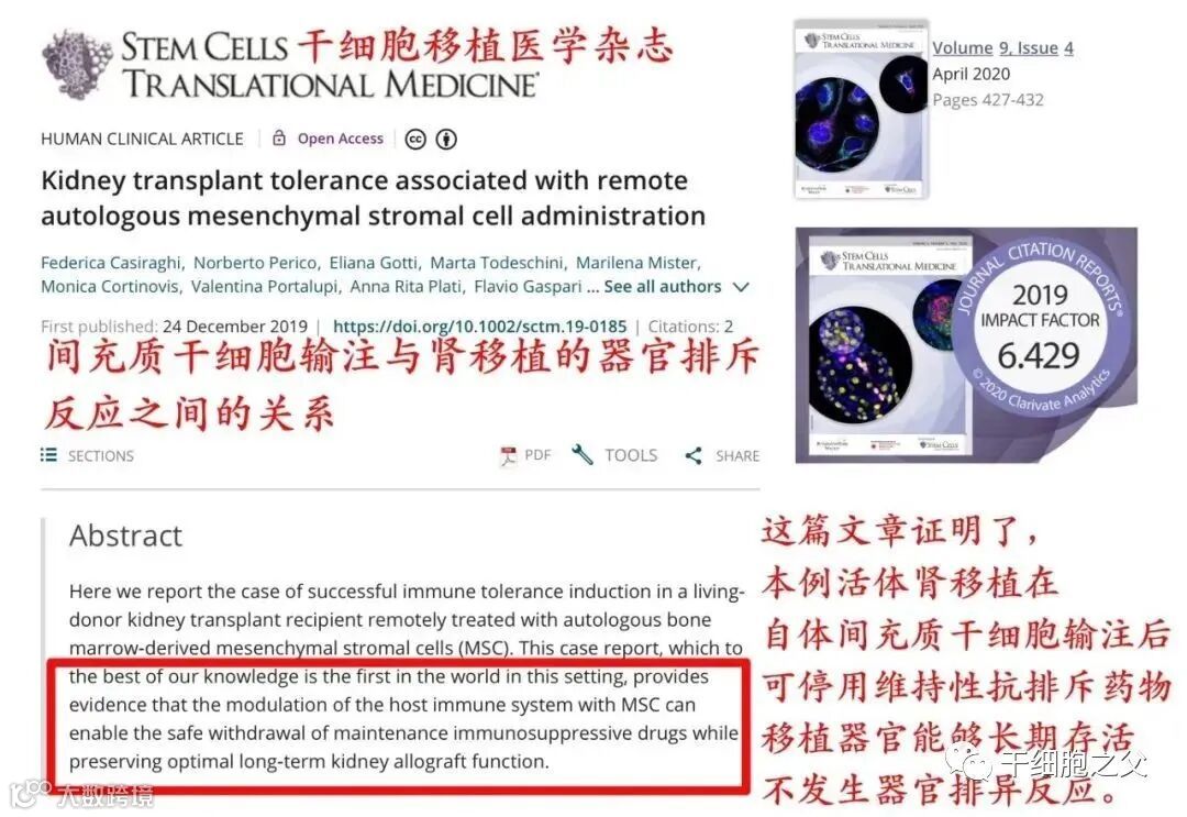 另外,干细胞通过细胞间的相互作用及产生细胞因子而抑制T细胞的增殖及其免疫反应,从而发挥免疫重建的功能,减少肾脏移植后的免疫排斥反应。