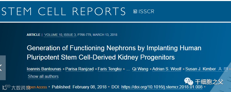 2018年2月8日,一项具有突破性进展的研究成果刊登在著名学术期刊《干细胞报告》上。