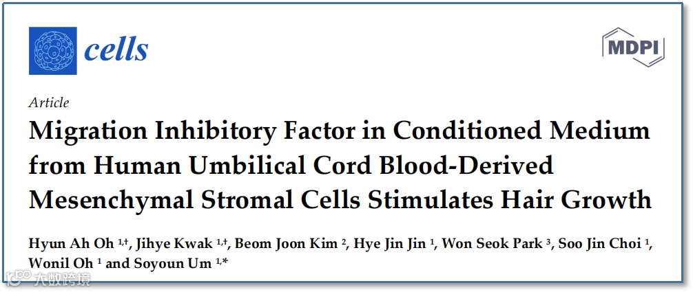 [4]Hyun Ah Oh , Jihye Kwak,et al.Migration Inhibitory Factor in Conditioned Medium from Human Umbilical Cord Blood-Derived Mesenchymal Stromal Cells Stimulates Hair Growth[J].Cells ,2020, 9.