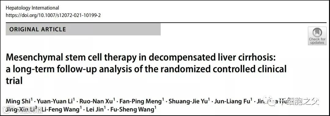 王福生院士团队在《国际肝病学杂志》(Hepatology International)发表的研究结果显示,脐带间充质干细胞显著改善了失代偿性肝硬化的肝功能及长期生存率。