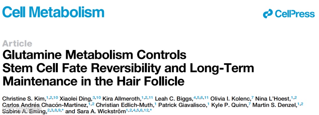 德国科隆大学和马普所衰老生物学研究所的科学家们在Cell Metabolism上发表了题为Glutamine Metabolism Controls Stem Cell FateReversibility and Long-Term Maintenance in the Hair Follicle 的最新研究成果。