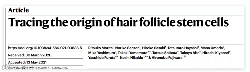 日本理化学研究所Hironobu Fujiwara 团队在 Nature 上发表题为 Tracing the origin of hair follicle stem cells 的研究论文,对毛囊干细胞的来源进行了追溯。