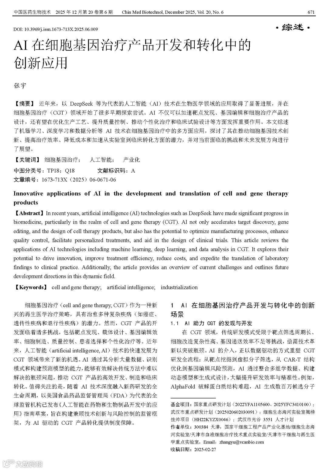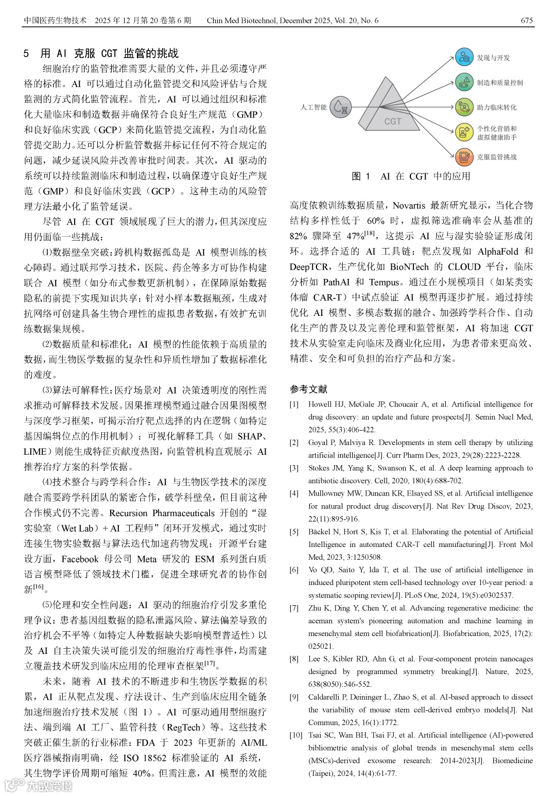 Zhang Y. Innovative applications of AI in the development and translation of cell and gene therapy products[J]. Chin Med Biotechnol, 2025, 20(6):671-676.