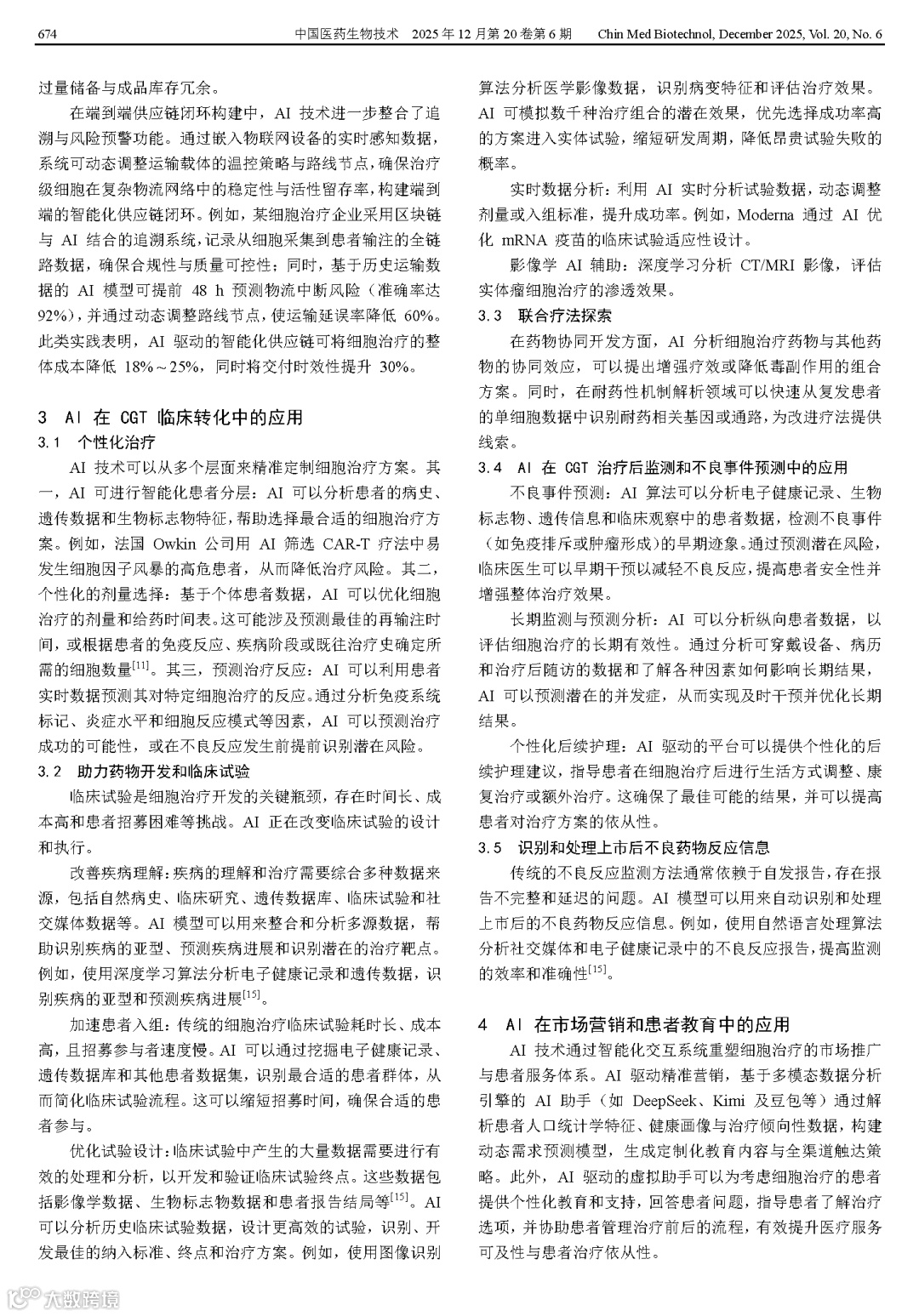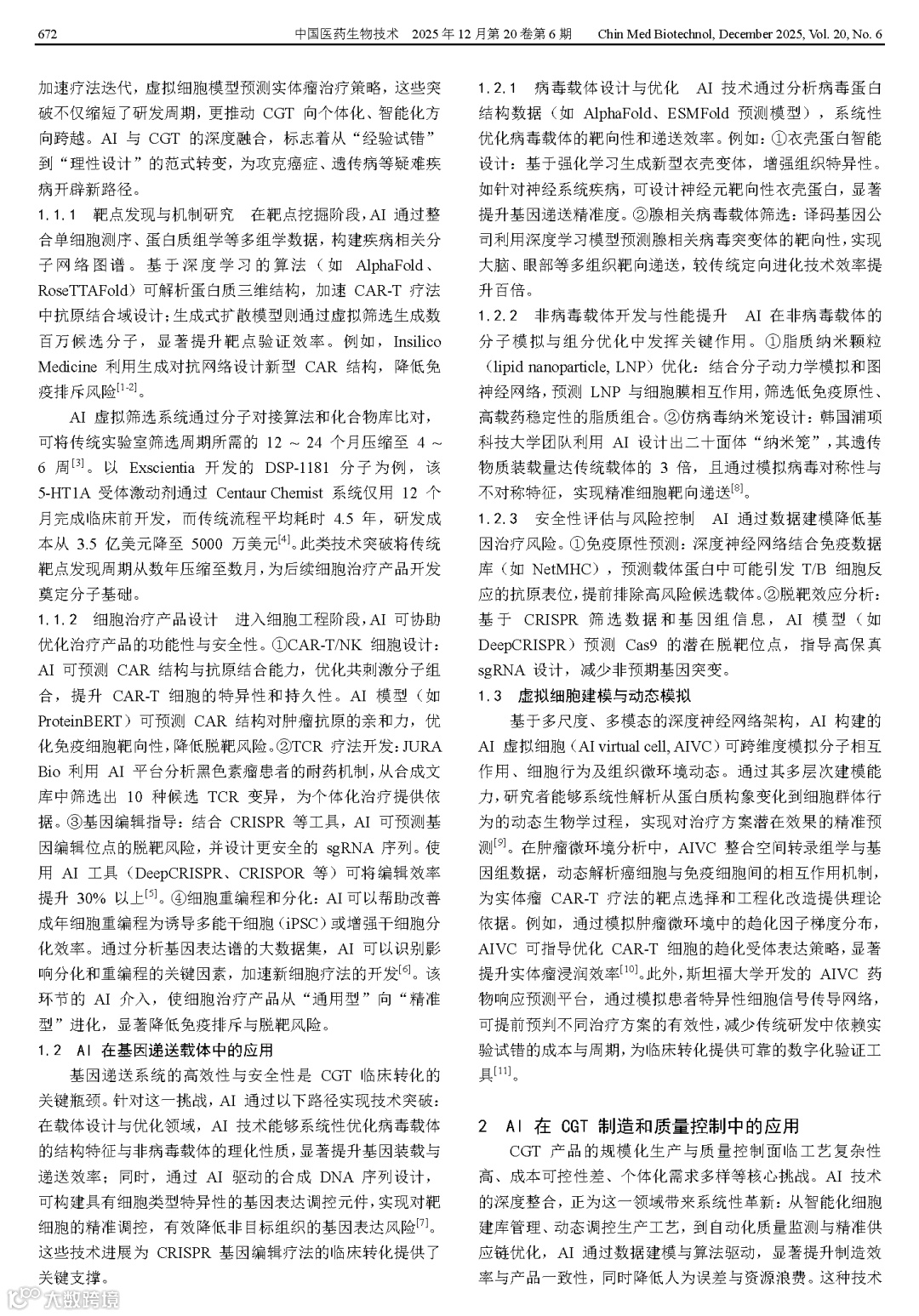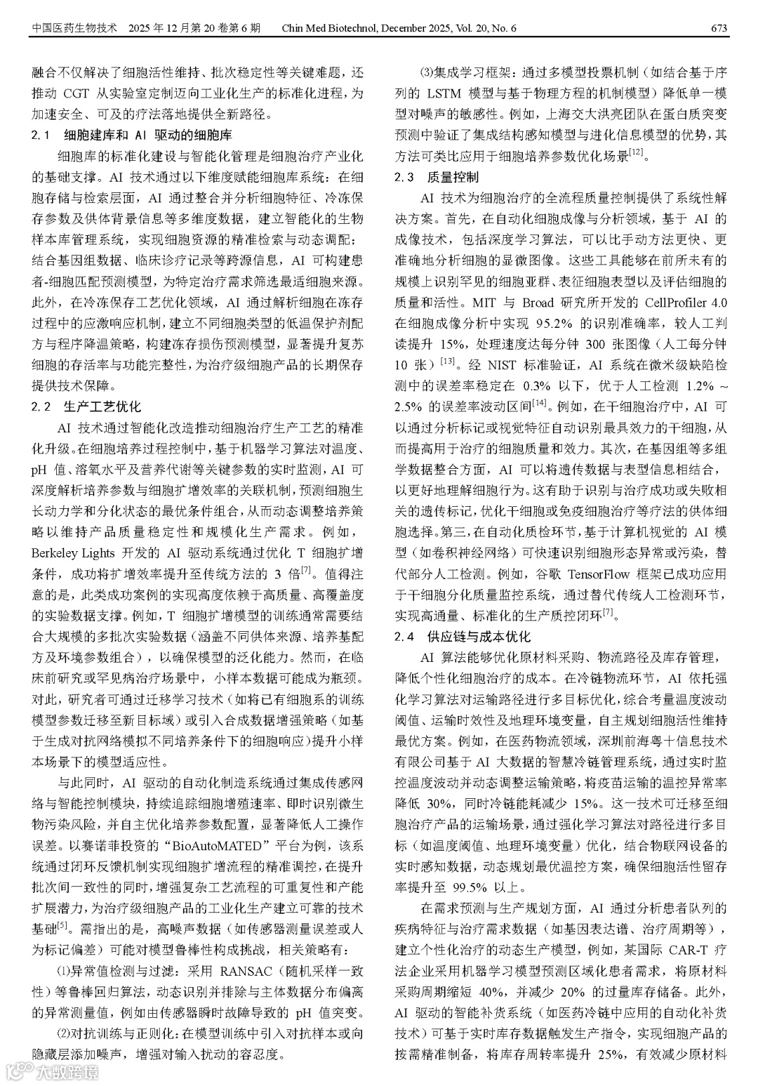 张宇. AI在细胞基因治疗产品开发和转化中的创新应用[J]. 中国医药生物技术, 2025, 20(6):671-676.