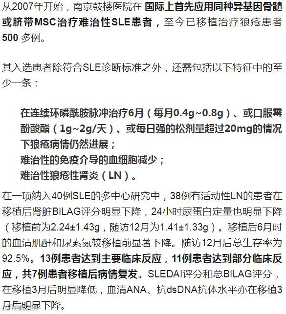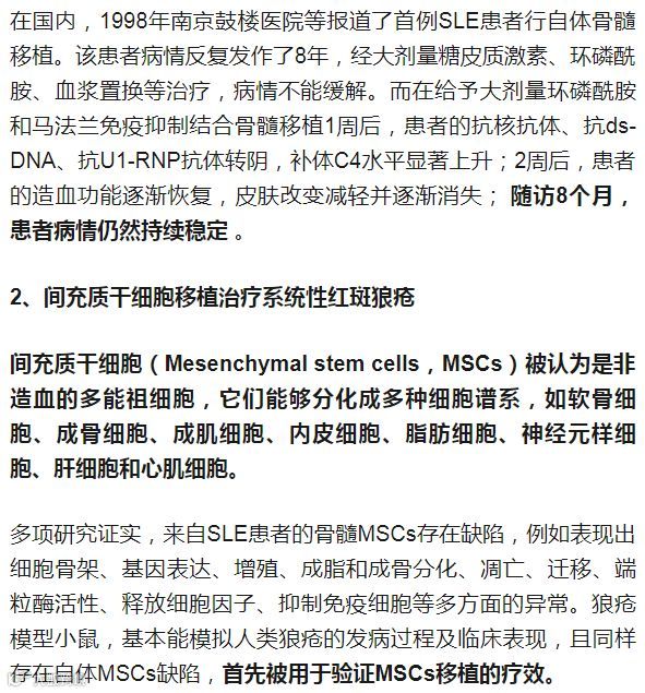 1、造血干细胞移植治疗系统性红斑狼疮