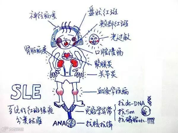系统性红斑狼疮(systemic lupus erythematosus,SLE)是一种由于自体抗体免疫复合物沉淀导致多器官衰竭的系统性疾病。简单来说,机体由于某种原因将自身组成识别为“危险物质”,启动免疫反应企图清除这些“危险物质”。