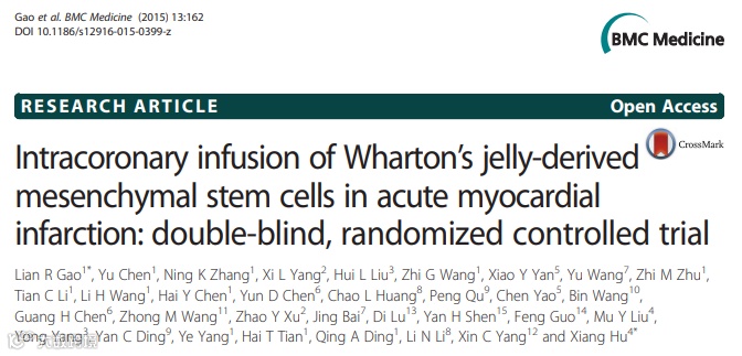 2015年,海军总医院发表了一项脐带间充质干细胞治疗急性心梗的双盲随机对照临床实验结果,治疗组共58位患者接受了18个月的随访,发现治疗组的心肌活力增加、梗死面积缩小,左室射血分数(LVEF)明显升高,左室舒张末期容积(LVDSV)和左室收缩末期容积(LVESV)明显减小。众多临床研究表明脐带间充质干细胞治疗心血管疾病是一种安全有效的方法。