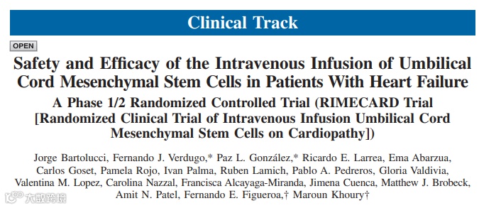 结果表明心力衰竭和射血分数降低的患者静脉输注UC-MSC是安全的,且可观察到接受UC-MSCs治疗的患者在左心室功能、功能状态和生活质量的改善。