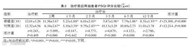 随后,研究人员临床观察了两组患者治疗前后一段时间的睡眠质量评分。