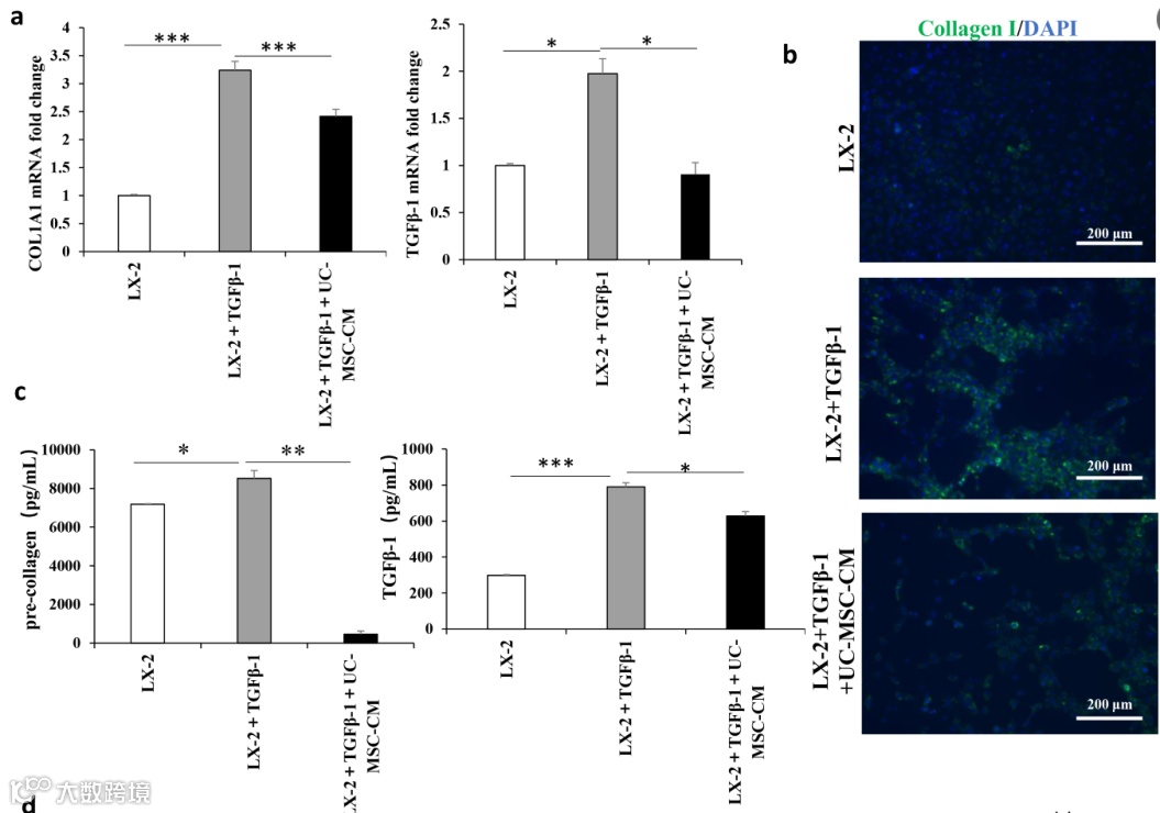 在本研究中,利用四氯化碳诱导的纤维化大鼠模型,研究了脐带源间充质干细胞(UC-MSC)与其条件培养基(MSC-CM)在动物体内的药效学功能。同时,评估了体外MSC和MSC-CM对肝星状细胞系LX-2的各种细胞过程的影响,包括增殖、凋亡、激活、免疫调节能力和炎症因子分泌等。
