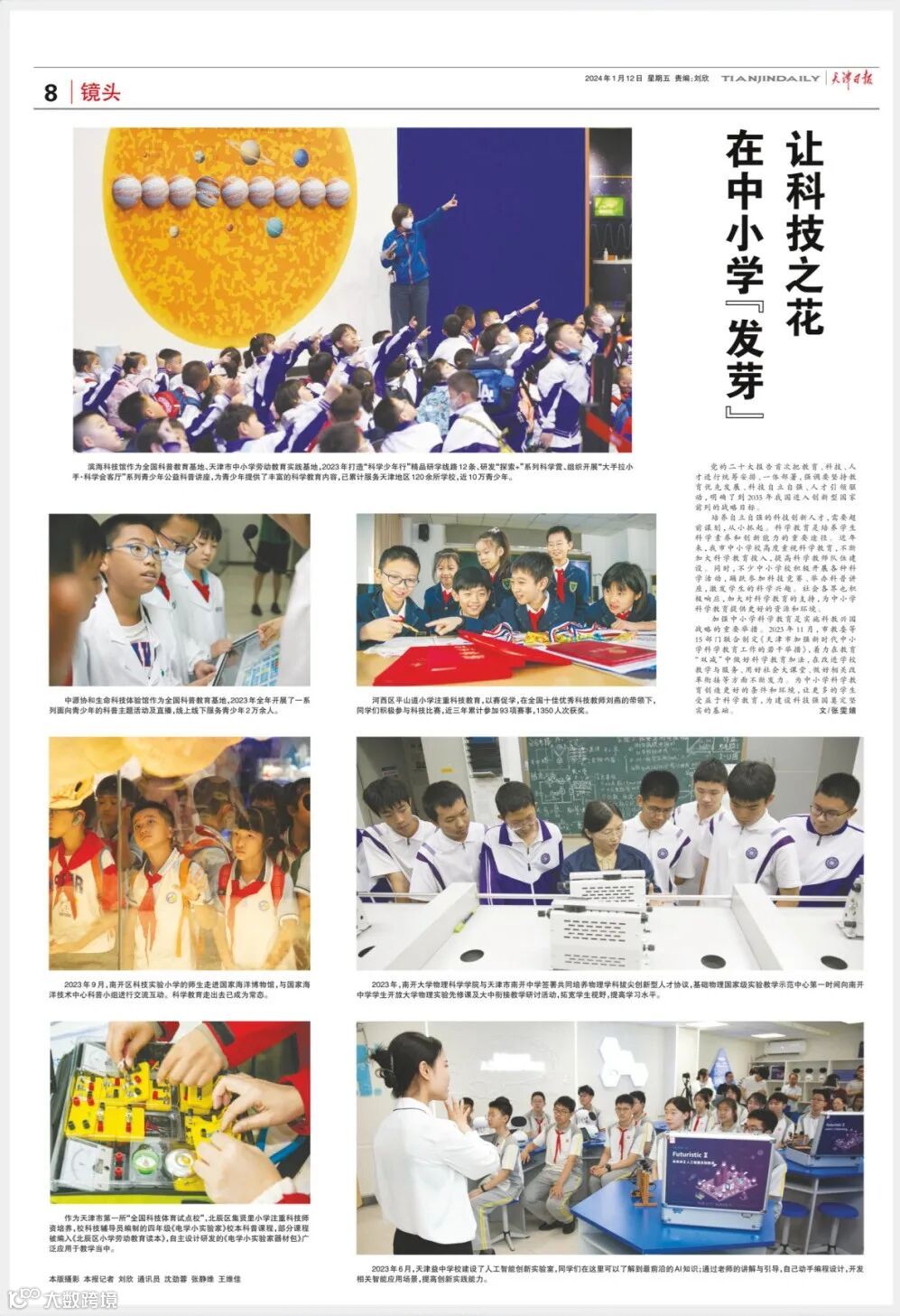 1月12日,中源协和生命科技体验馆登上《天津日报》,科普教育工作再获肯定!中源协和生命科技体验馆作为全国性科普教育基地,积极开展公益讲座、学术沙龙,科技夏令营等覆盖全年龄层次的科普活动,其中青少年是科普工作的重点人群。2023年,中源协和全国科普教育基地线上、线下共服务青少年2万余人。