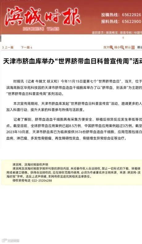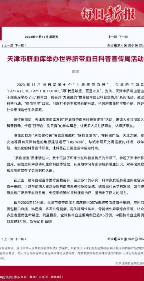 此前,一位19年前在天津脐血库存储脐血的再障患者,应用自体脐带血造血干细胞成功救治了疾病,创造了全国脐血自存自用时间最长的纪录。充分证明了天津市脐血库严格的质量管理体系和细胞资源存储的安全可靠。