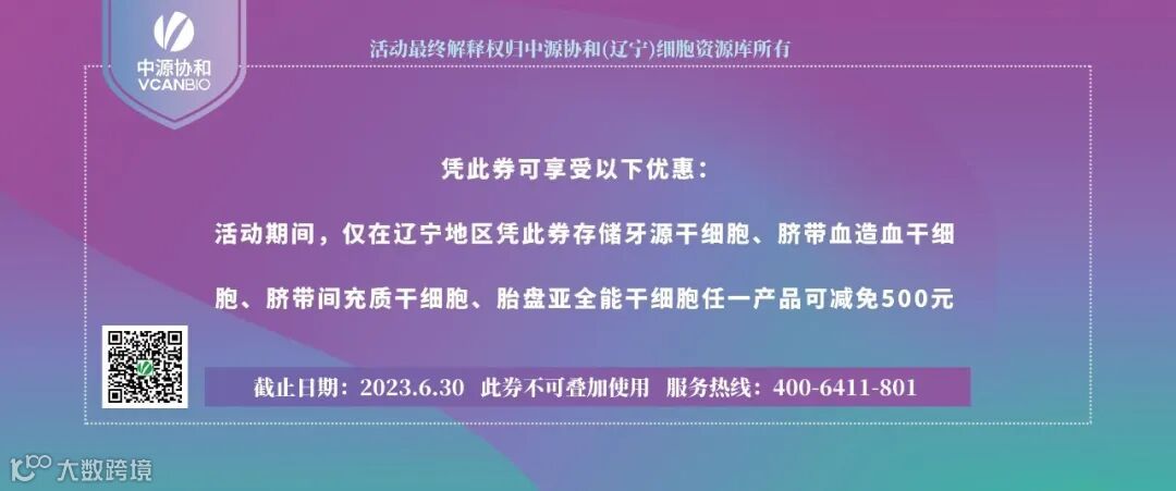 500元代金券,储存任一项干细胞资源即可减免,此券不可叠加使用,有效期截止到2023年6月30日