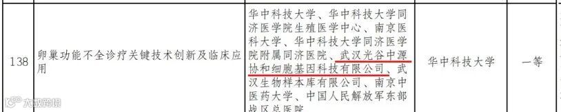 2022年1月4日,湖北省科学技术厅发布了《2021年度湖北省科学技术奖拟奖项目公示》,根据《湖北省科学技术奖励办法》及其实施细则规定,对2021年度湖北省自然科学奖、技术发明奖、科学技术进步奖、科学技术成果推广奖、科技型中小企业创新奖拟奖项目进行公示。武汉光谷中源协和细胞基因科技有限公司(下称:武汉光谷中源协和)作为主要完成单位的“卵巢功能不全诊疗关键技术创新及临床应用”榜上有名,拟授予“科学技术进步一等奖”。公示期已于当月10日结束。