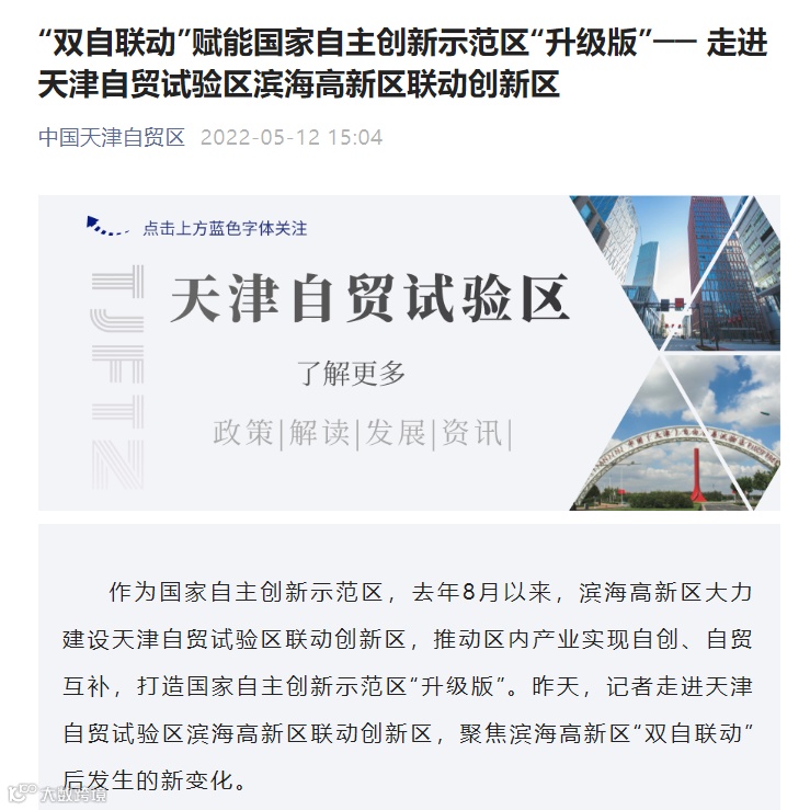 2021年8月以来,滨海高新区大力建设天津自贸试验区联动创新区,推动区内产业实现自创、自贸互补,打造国家自主创新示范区“升级版”。