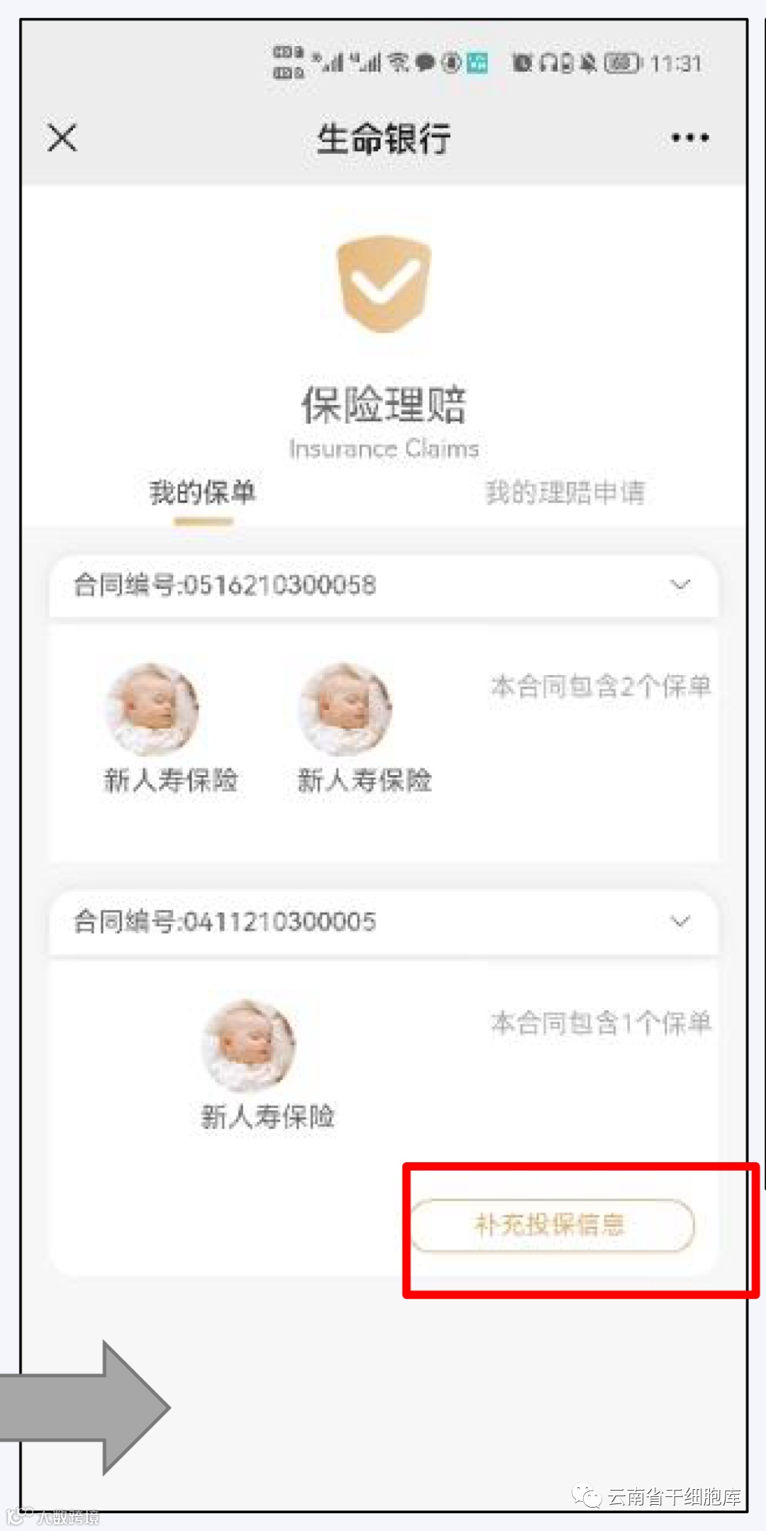 3. 点击“补充投保信息”按钮,点击后进入页面提交信息。