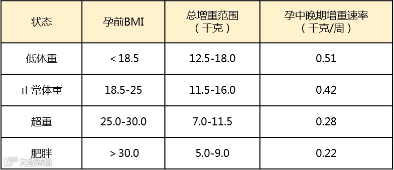 比如,您怀孕前BMI指数算出来是 18.8,属于正常范围,那么孕期体重增加范围是11.5-16千克。