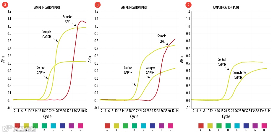 △ 实时 PCR 显示 Y 染色体在雄性 BM-MSC 和 AT-MSC 注射的雌性大鼠心脏中表达,而在 AMI+CFM 组中未检测到