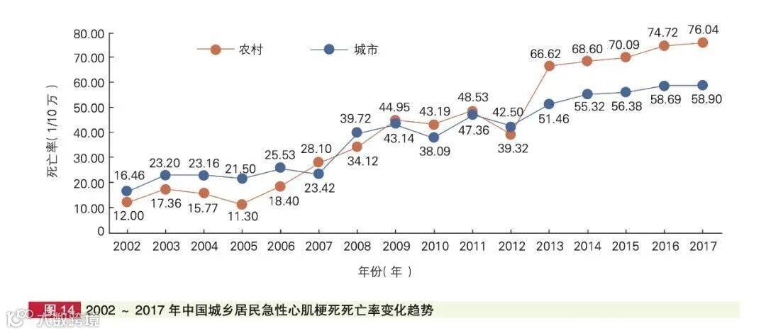 △ 我国城乡居民急性心肌梗死死亡率逐年攀升