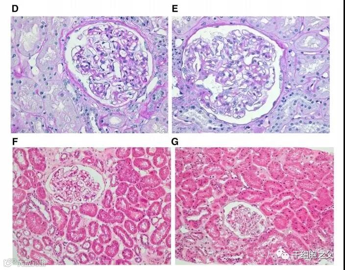 D、E:过碘酸-希夫(氏)染色;F、G:苏木素伊红染色